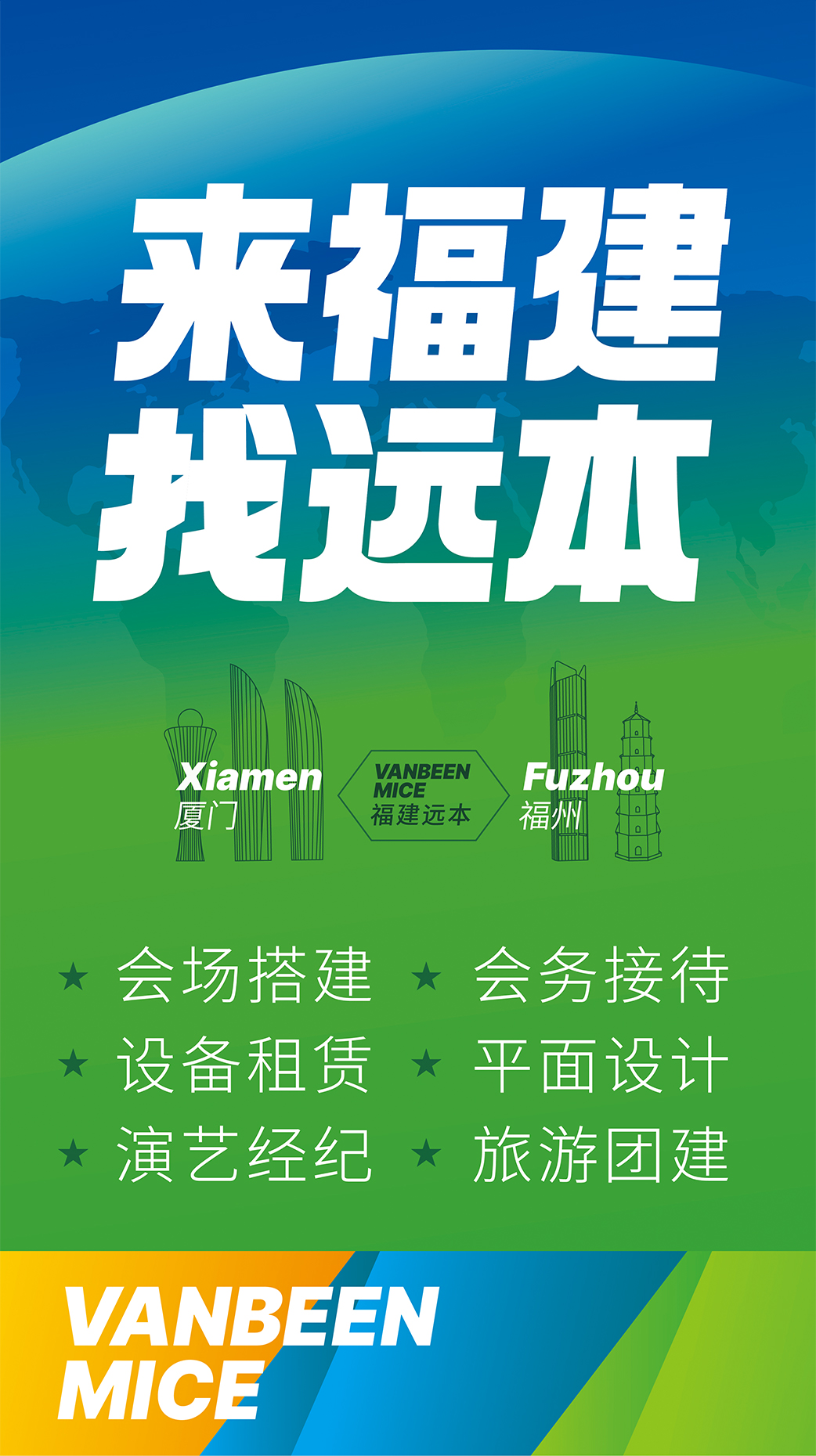廈門遠(yuǎn)本成立于2013年,是一家集策劃設(shè)計、落地搭建以及會議接待等全案服務(wù)的DMC公司。公司擁有LED屏幕、燈光音響、木作工廠等專業(yè)舞美設(shè)備,擁有一批專業(yè)穩(wěn)定的策劃設(shè)計和會務(wù)接待團(tuán)隊,能夠快速、精準(zhǔn)地為客戶提供優(yōu)質(zhì)的策劃、設(shè)計、搭建、接待等服務(wù)。公司已服務(wù)過華為、阿里、麥當(dāng)勞、中國移動、埃克森美孚、興業(yè)銀行、招商銀行、華潤三九、齊魯制藥、萬邦制藥等國內(nèi)外知名企業(yè),并成功入選中國國旅、中旅、康輝國旅、錦江國旅、中智商展、墨馬傳媒等國內(nèi)知名PCO公司供應(yīng)商庫。